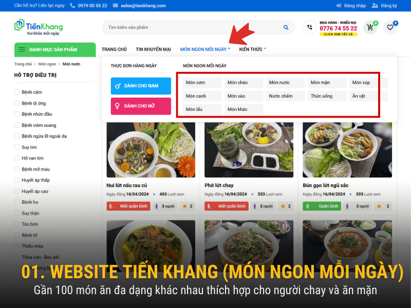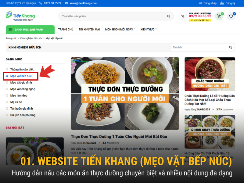 Website Tiến Khang www.tienkhang.com chính là nguồn tài nguyên miễn phí hoàn hảo dành cho những ai muốn học nấu ăn thực dưỡng một cách bài bản. Với nội dung đa dạng không chỉ kênh mua bán sản phẩm dưỡng sinh chất lượng, website còn có nhiều mục thông tin hữu ích như nấu ăn, kiến thức, sản phẩm, ,..trở thành kênh thực dưỡng đáng tin cậy và uy tín nhất hiện nay.