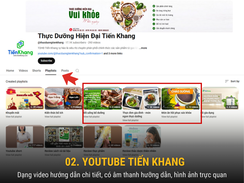 Nếu bạn thích học nấu ăn bằng hình ảnh trực quan, thì kênh YouTube của Tiến Khang - Thực dưỡng hiện đại Tiến Khang (hơn 17 nghìn đăng kí, gần 300 video) sẽ là lựa chọn hoàn hảo.