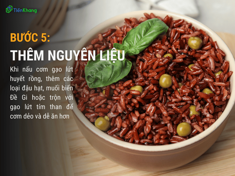 Khi nấu cơm gạo lứt huyết rồng, thêm các loại đậu hạt (đậu đen xanh lòng, xích tiểu đậu, đậu gà, hạt sen, hạt kê,) và một chút muối biển Đề Gi sẽ giúp cơm lứt tăng thêm hương vị, giá trị dinh dưỡng và tránh bị ngán. Kết hợp này không chỉ giúp cơm mềm dẻo, bùi ngậy mà còn cung cấp nhiều chất xơ, khoáng chất tốt cho sức khỏe.