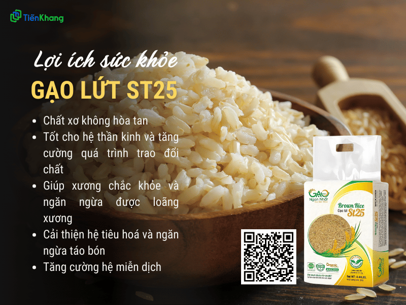 Đối với gạo lứt, Tiến Khang có các loại như gạo lứt ST25, gạo lứt huyết rồng, gạo lứt tím than,....với hàm lượng dinh dưỡng cao và đặc biệt an toàn cho sức khỏe rất thích hợp cho người quan tâm sức khỏe, người ăn chay, ăn kiêng và ăn thực dưỡng.