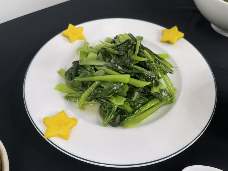 Đảo đều tay cho đến khi thấy rau chín thì tắt bếp, bày món ăn ra đĩa và thực hiện đến món ăn cuối cùng đó là canh xà lách xoong nấu nấm rơm.